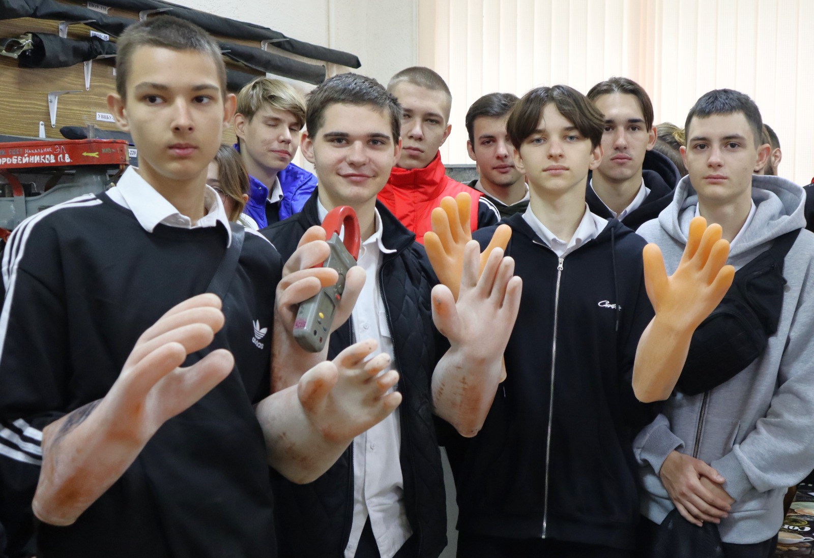 В лаборатории службы изоляции и защиты от перенапряжений специалисты продемонстрировали студентам и учащимся, как проходят испытания энергооборудования и средств индивидуальной защиты.