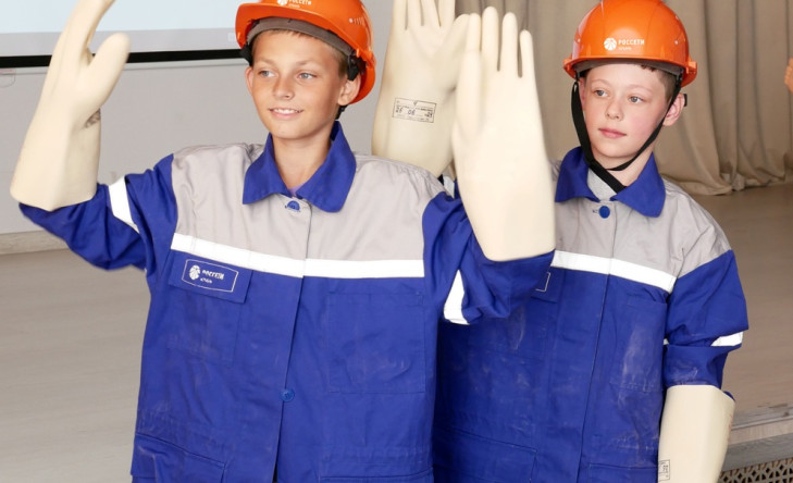 Кроме того, специалисты Тимашевских электрических сетей провели эстафету, где ребята соревновались в примерке специальных средств защиты энергетиков.
