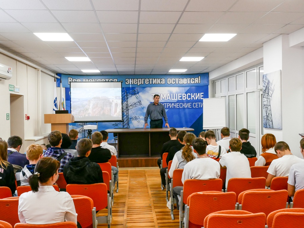 Специалисты Тимашевского филиала «Россети Кубань» провели встречу с учащимися Тимашевского техникума кадровых ресурсов. В мероприятии приняли участие 25 первокурсников, обучающихся по специальности «Электромонтер».
